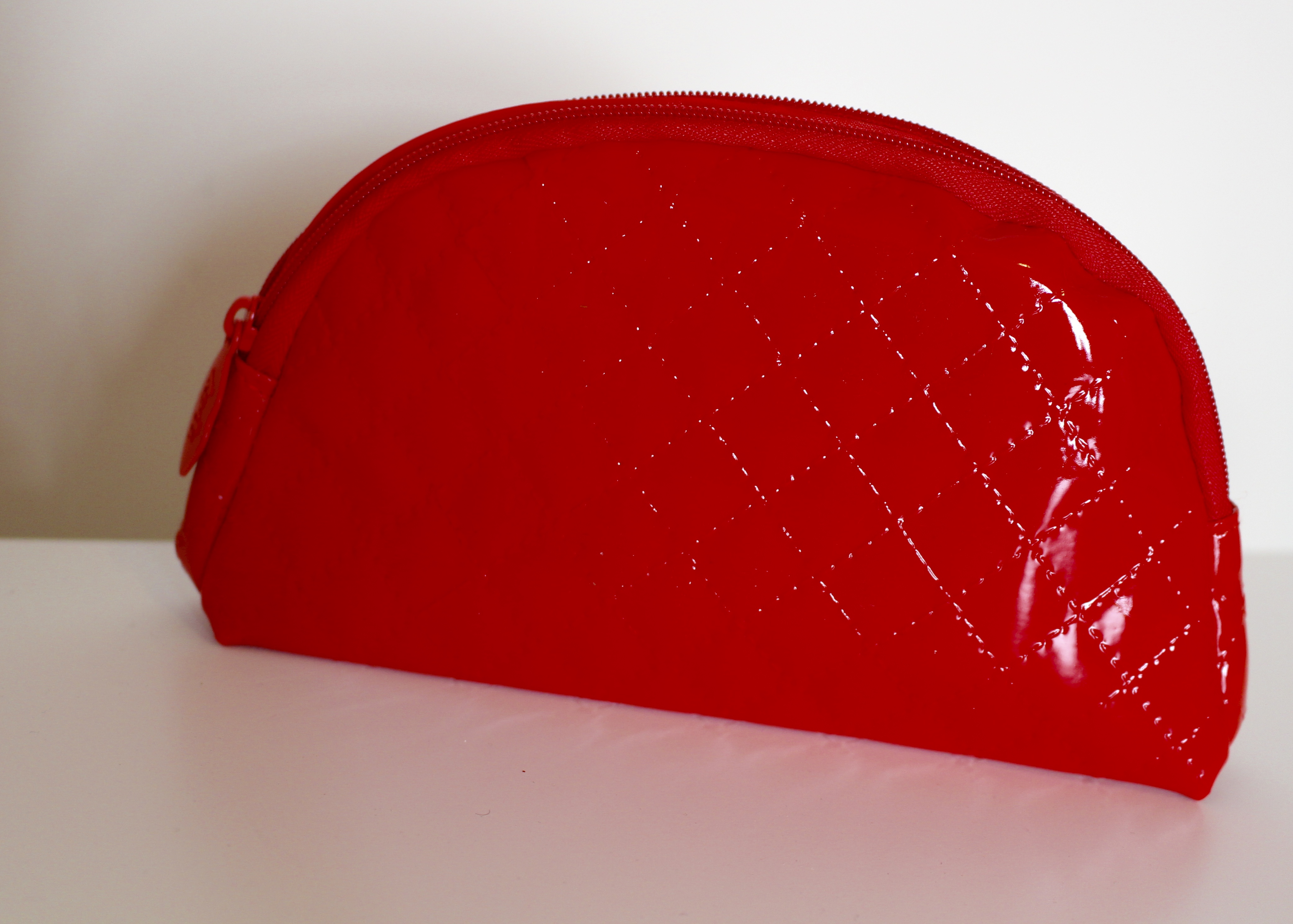 I really like that it was a different shape than my other glam bags. I like the red too, it was festive for the holidays, but still cute and usable for any other time. The brush was even able to fit inside despite how small the bag looks.