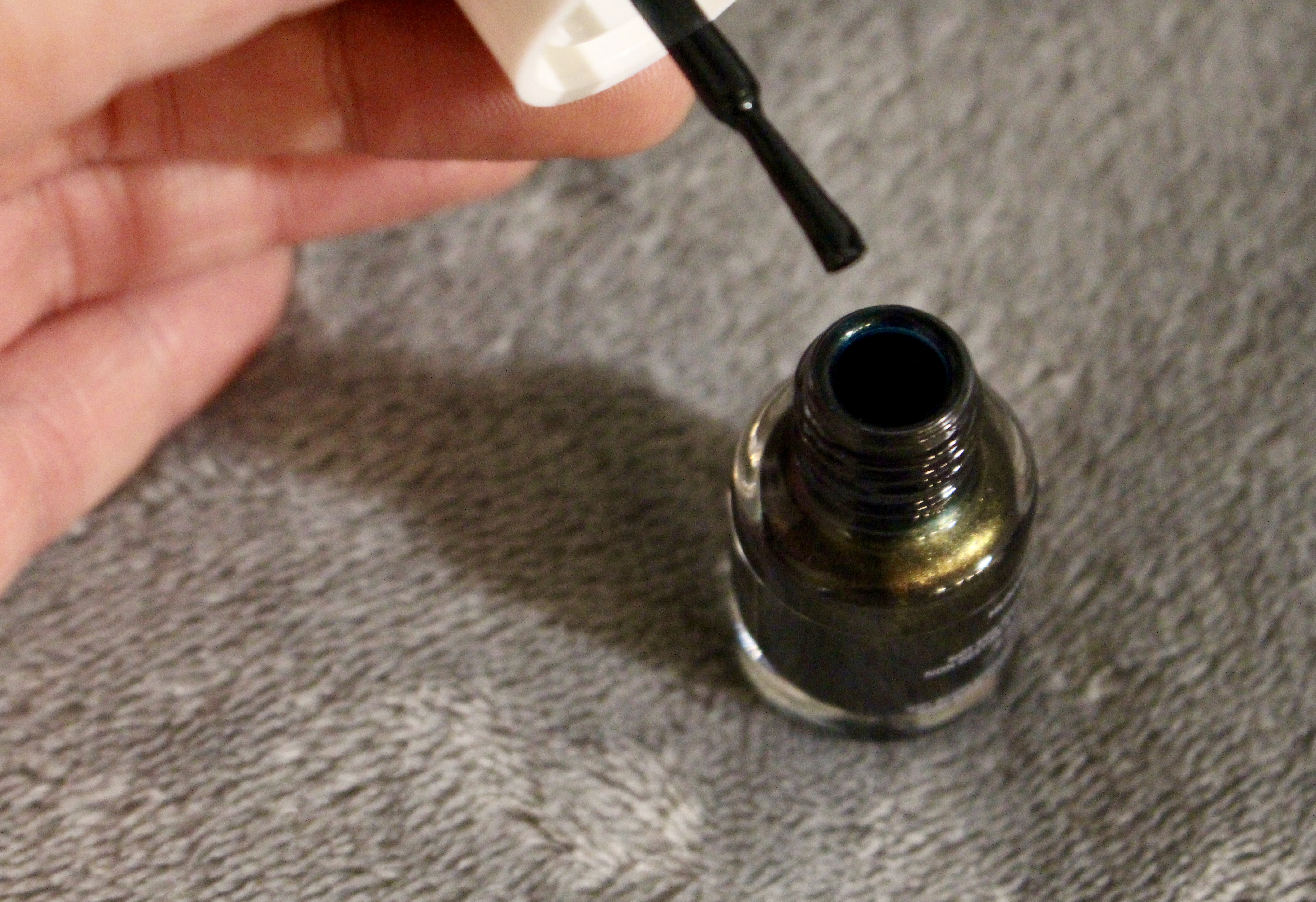 I hate painting my own nails, but I really loved this polish. I used it on my toes and it’s very dark–almost looks black–except super shiny with like a holographic filter when the light hits it. It has like that reflective rainbow look that spilled gasoline has. Probably a weird way to describe it, but you get the idea.