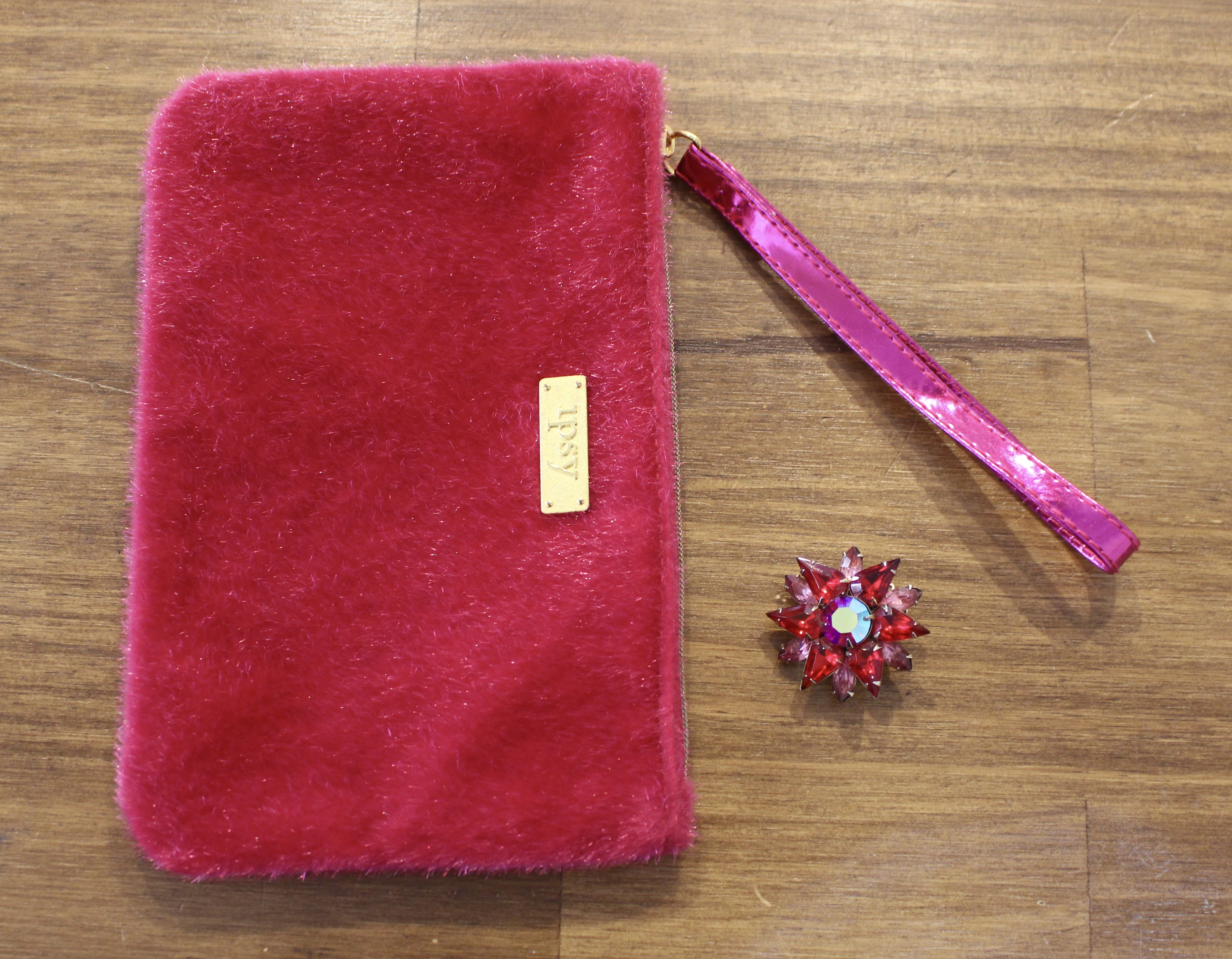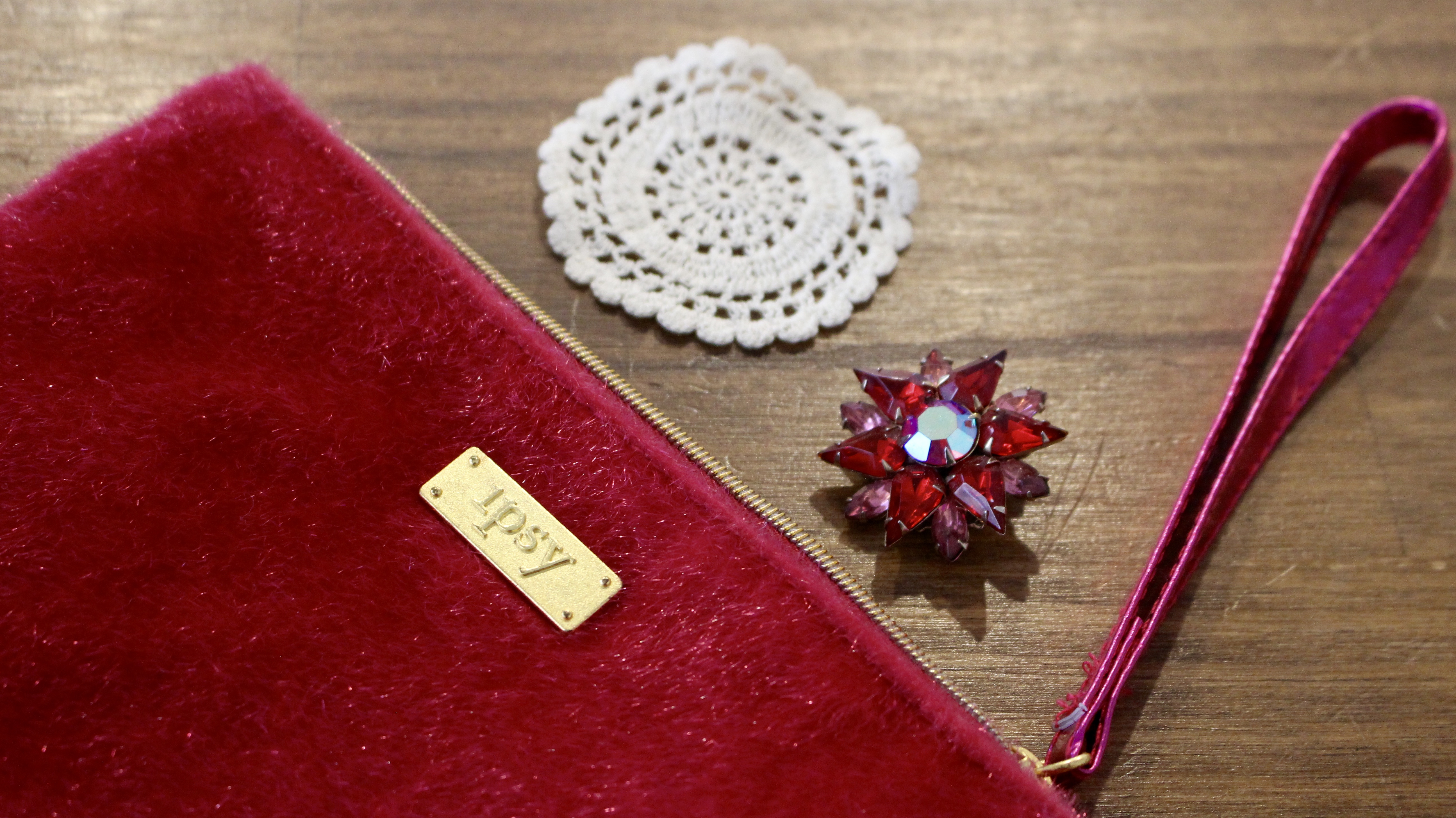 I think this bag is super cute. I would totally use this for a night like tonight… by the way it’s New Years Eve! So if you happen to be an Ipsy subscriber and you don’t know which wristlet to take out tonight, this pink plush may just be what you’re looking for.