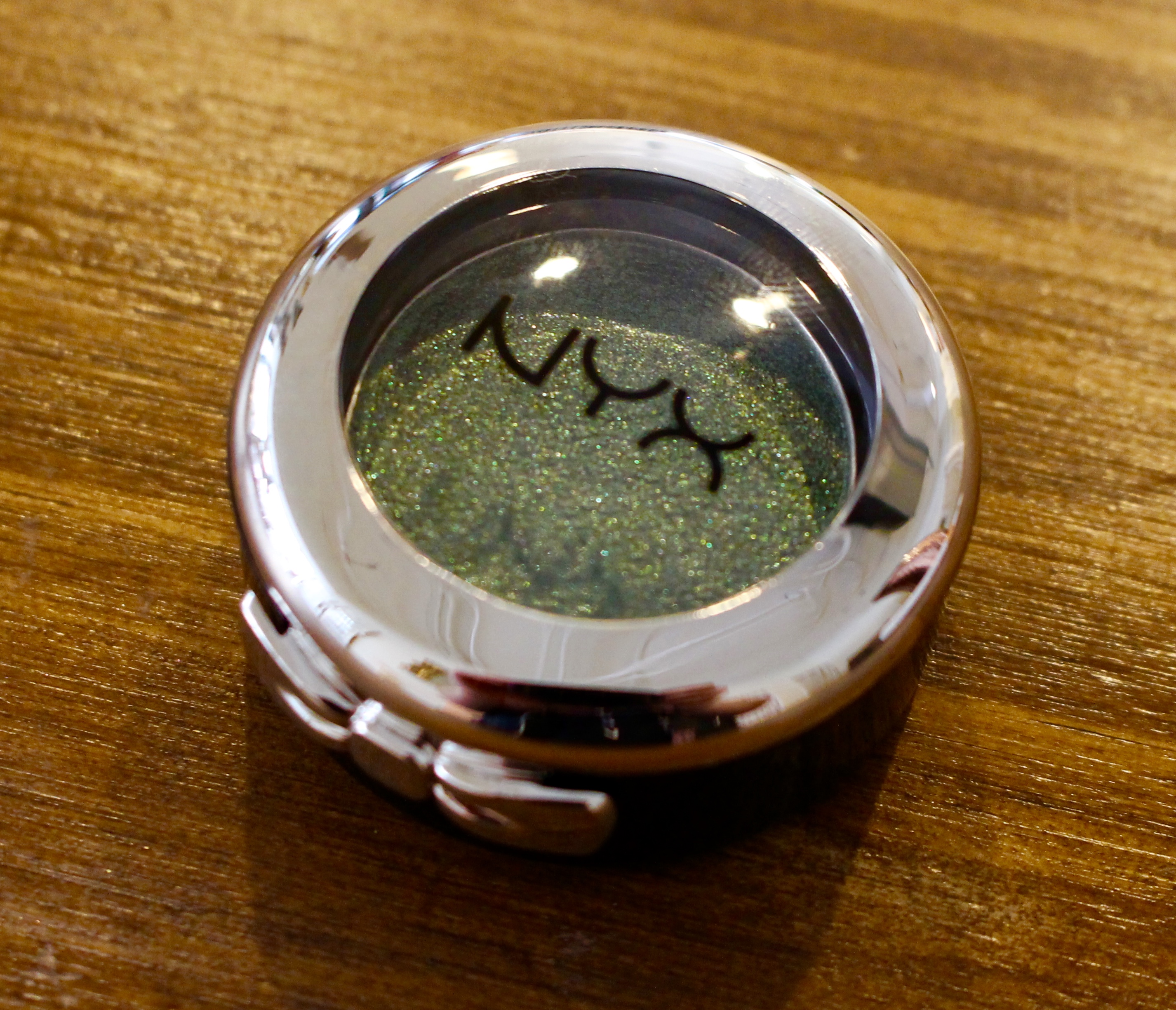 I love this eyeshadow! It’s so pretty and shimmery and the color is just perfect. Its like a dark green that almost looks silver. I applied it to my lid with a wet brush and it was the ultimate going out color.