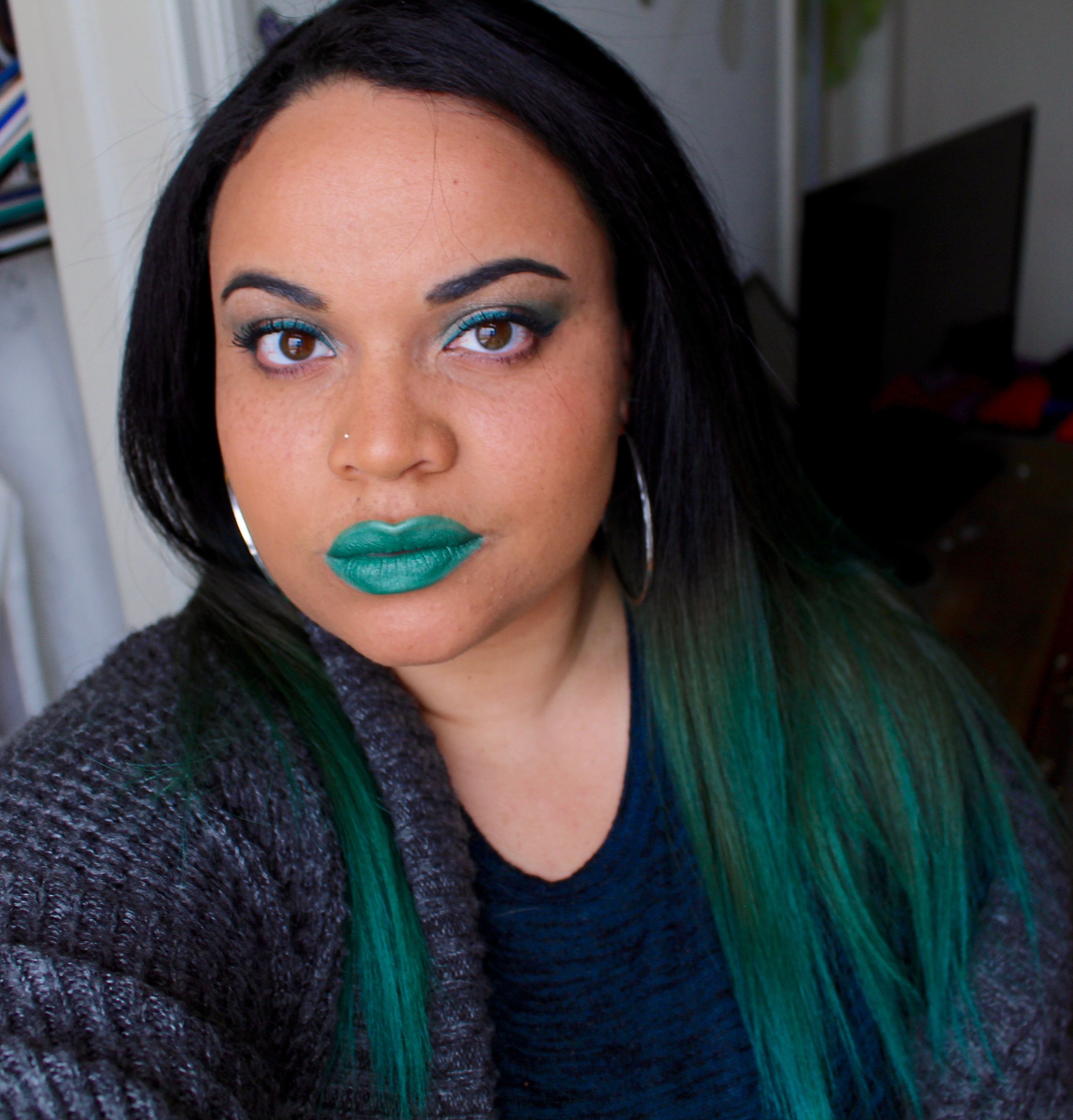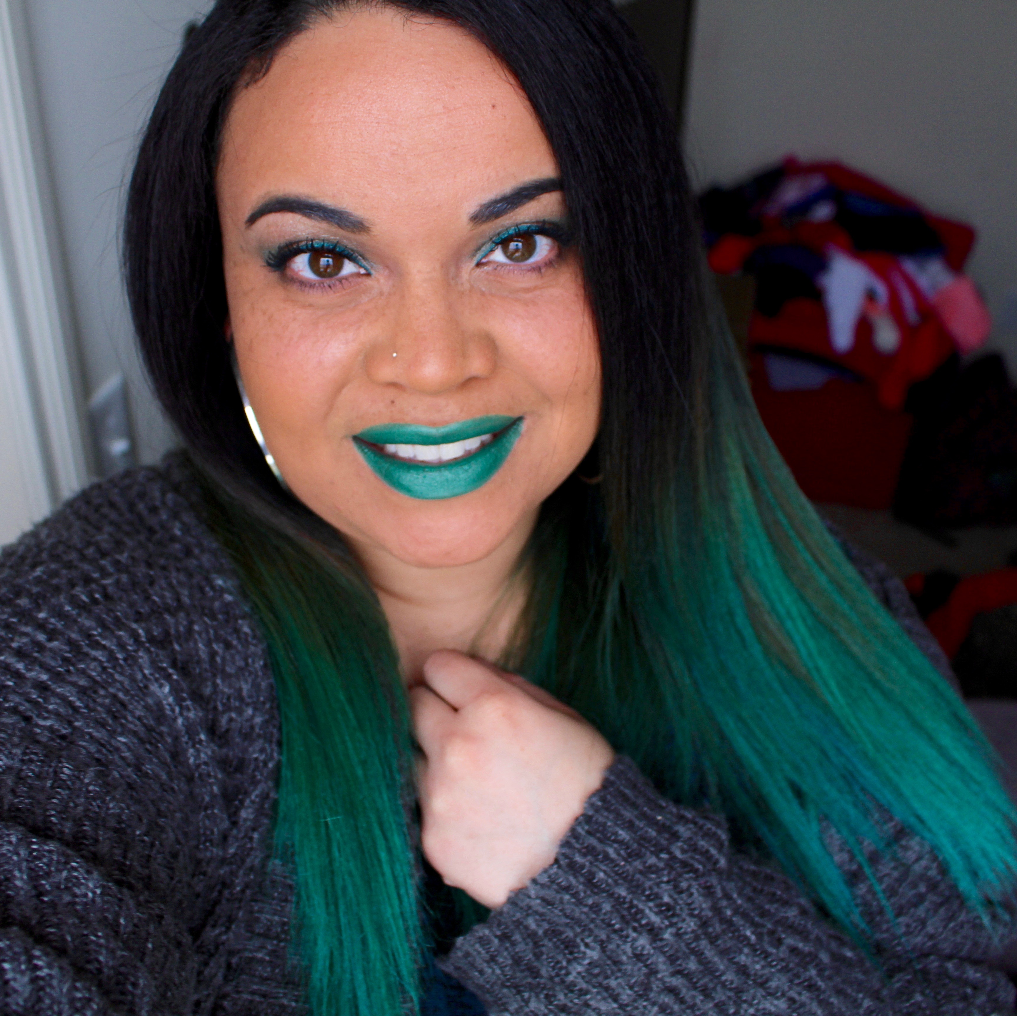 I wanted to try colors that I didn’t already have in my collection. I ended up purchasing “Piaf,” which is a dark brownish color with a purple sparkle to it, and “Plan 9,” a vibrant shade of emerald green. They are both really wonderful colors. They do last a longtime as well. The only complaint I have about the formula is that it does peel and flake a little while you wear it. It would probably work best with a lip primer underneath.