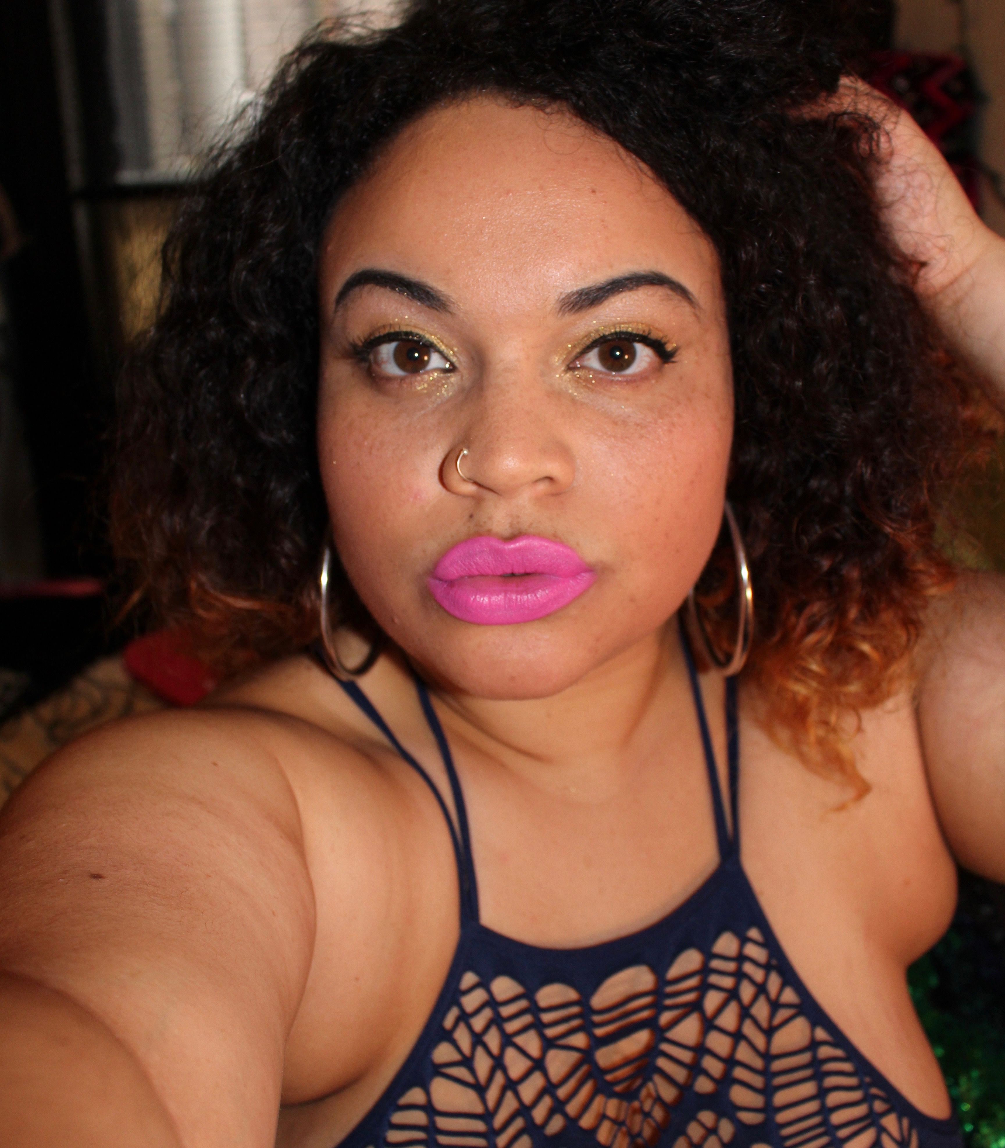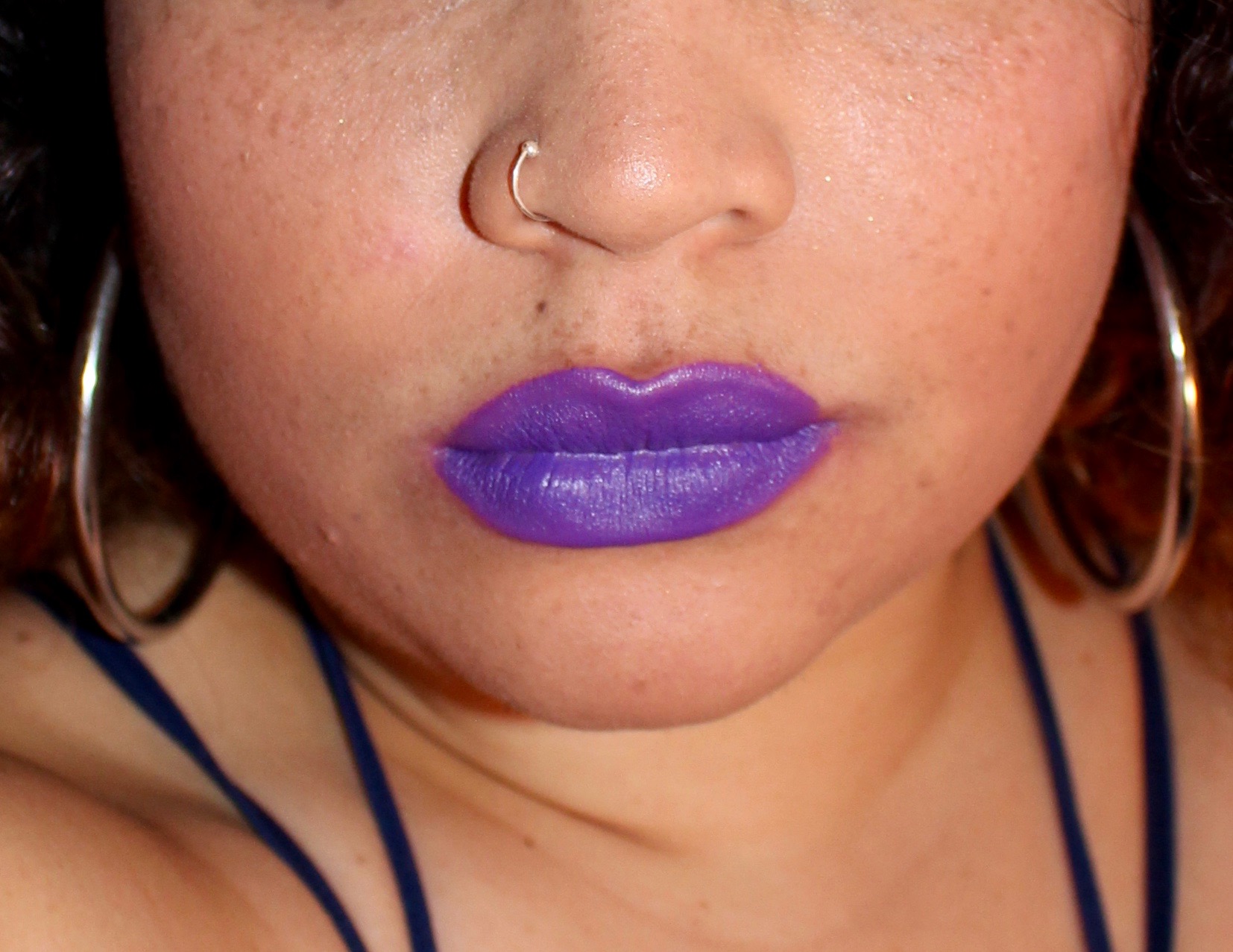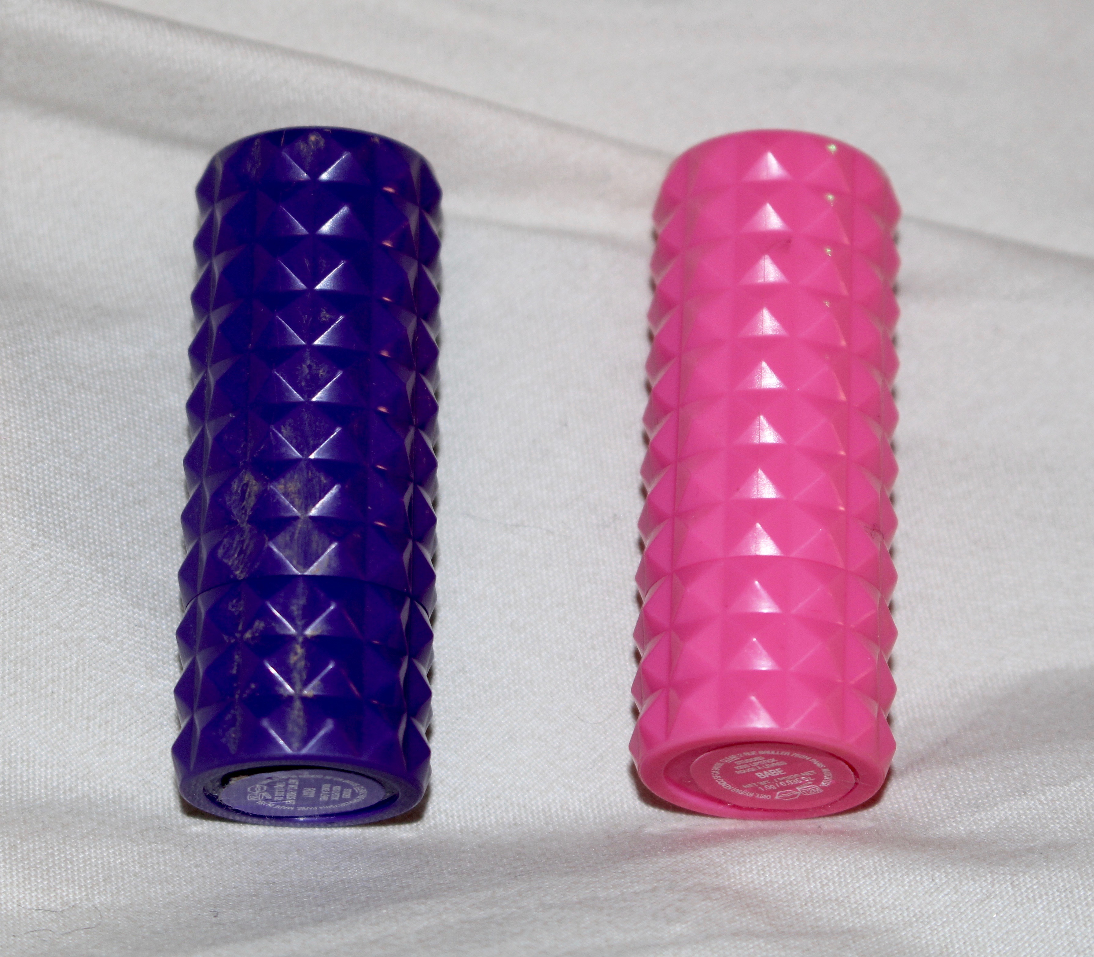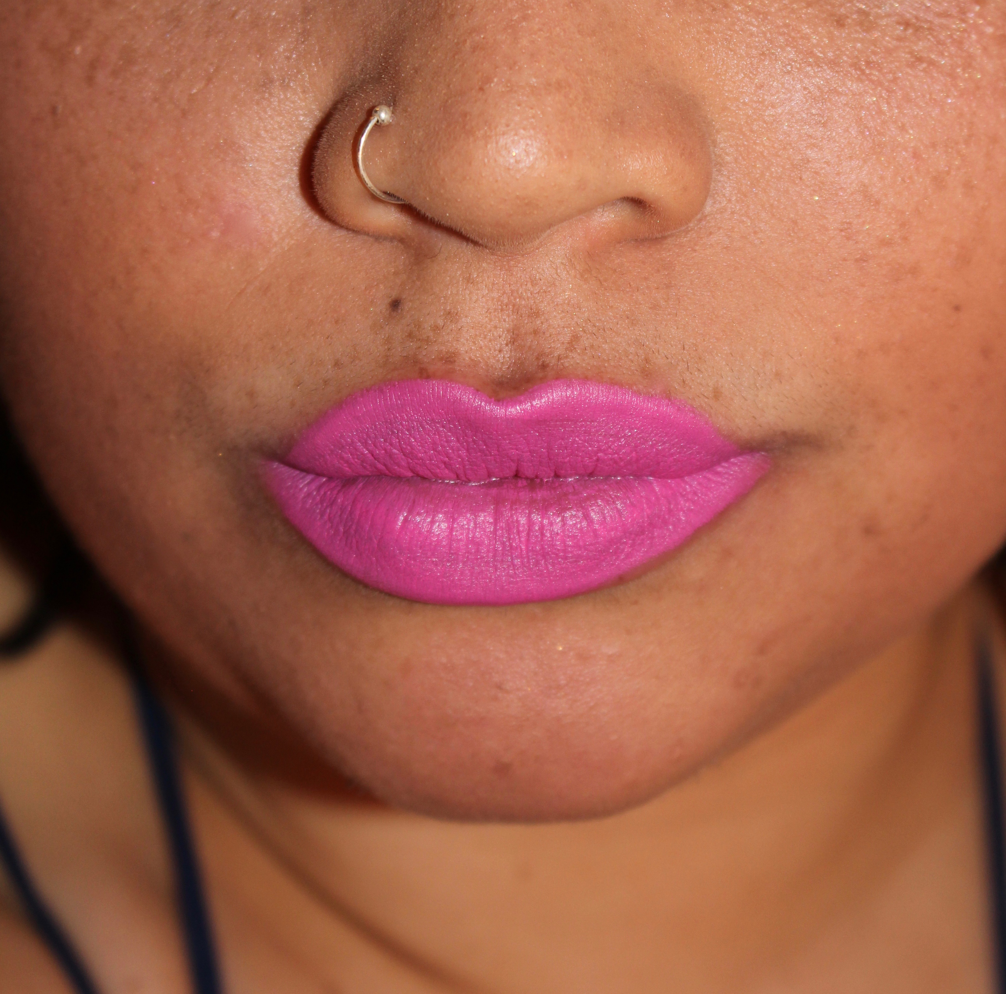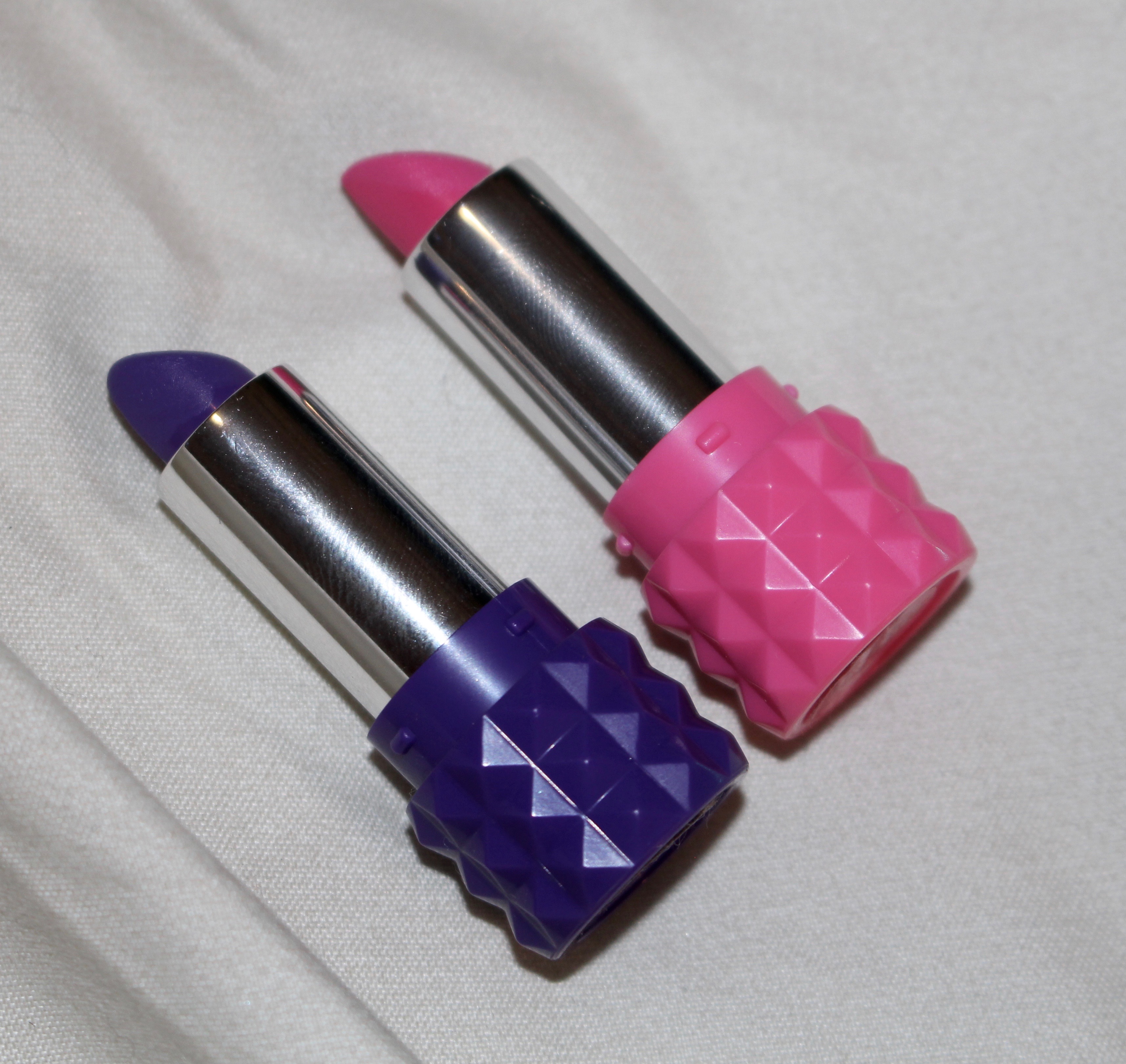A few months later, I was lucky enough to get a couple more vibrant colors to try out. After I finished my internship at Nylon Magazine they gifted me with a bunch of beauty samples. Included in it were two more Kat Von D lipsticks in sample size. The colors were part of the limited edition “Rock Candy” lipstick set (currently on sale at Sephora for $27). One was a hot pink and the other was a bright purple. I think the colors are super fun and with the right look, they could really make a girl stand out on a Friday night.