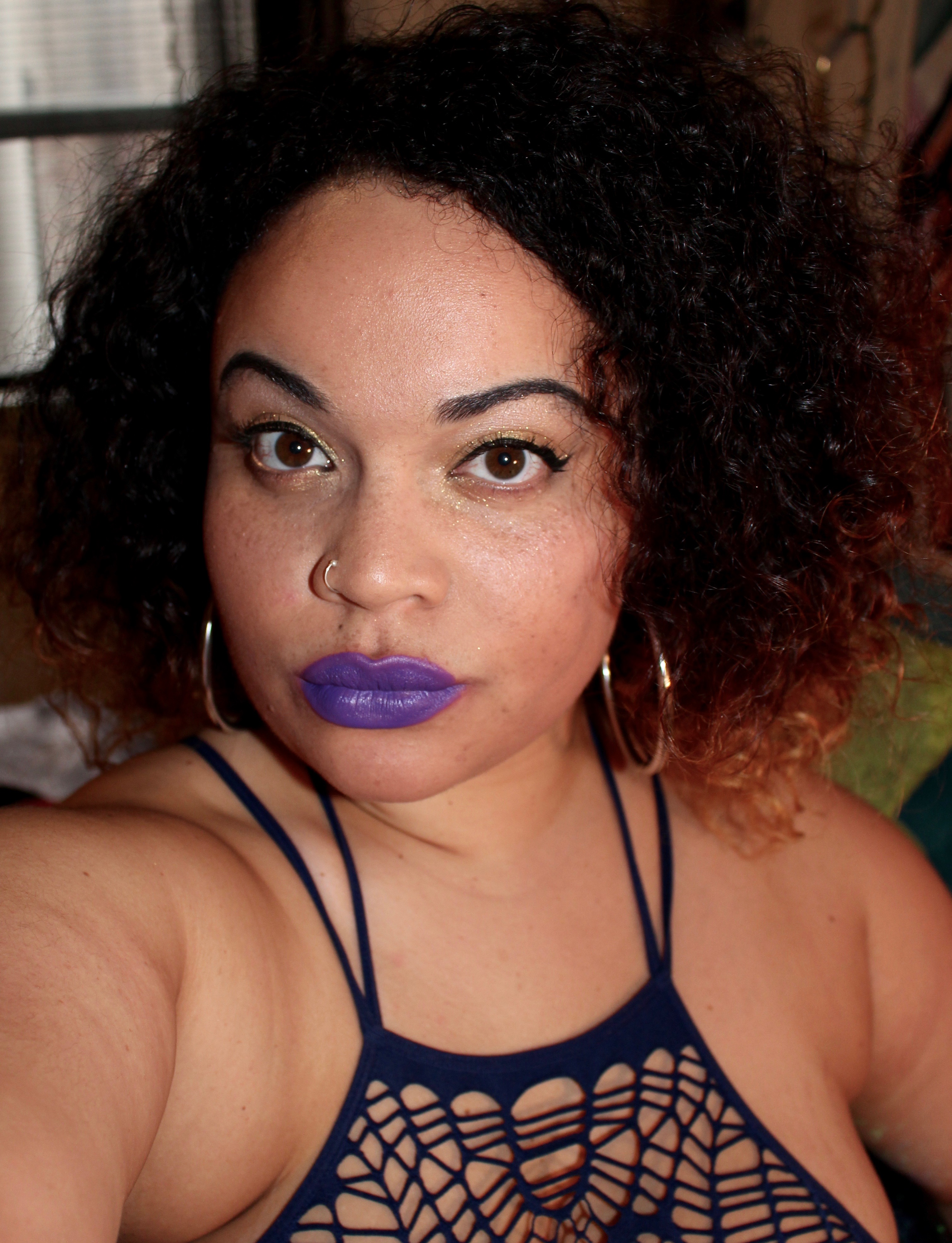 A few months later, I was lucky enough to get a couple more vibrant colors to try out. After I finished my internship at Nylon Magazine they gifted me with a bunch of beauty samples. Included in it were two more Kat Von D lipsticks in sample size.ย The colors were part of the limited edition “Rock Candy” lipstick set (currently on sale at Sephora for $27). One was a hot pink and the other was a bright purple. I think the colors are super fun and with the right look, they could really make a girl stand out on a Friday night.