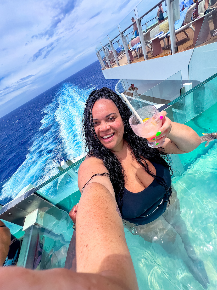 For our last stop on the cruise, we went to a private island in The Bahamas. Visiting CocoCay was my first time in The Bahamas and although it was another short visit, I can definitely see why it’s such a popular vacation destination. It was so gorgeous. A few of my family members and I got a day pass for the adults only beach and honestly, it was one of my favorite parts of the trip! It had it’s only little section of private beach so it wasn’t crowded, there was a swim-up bar, and a DJ. I really enjoyed myself! (And the bar tender gave me a couple of free drinks, LOL.)